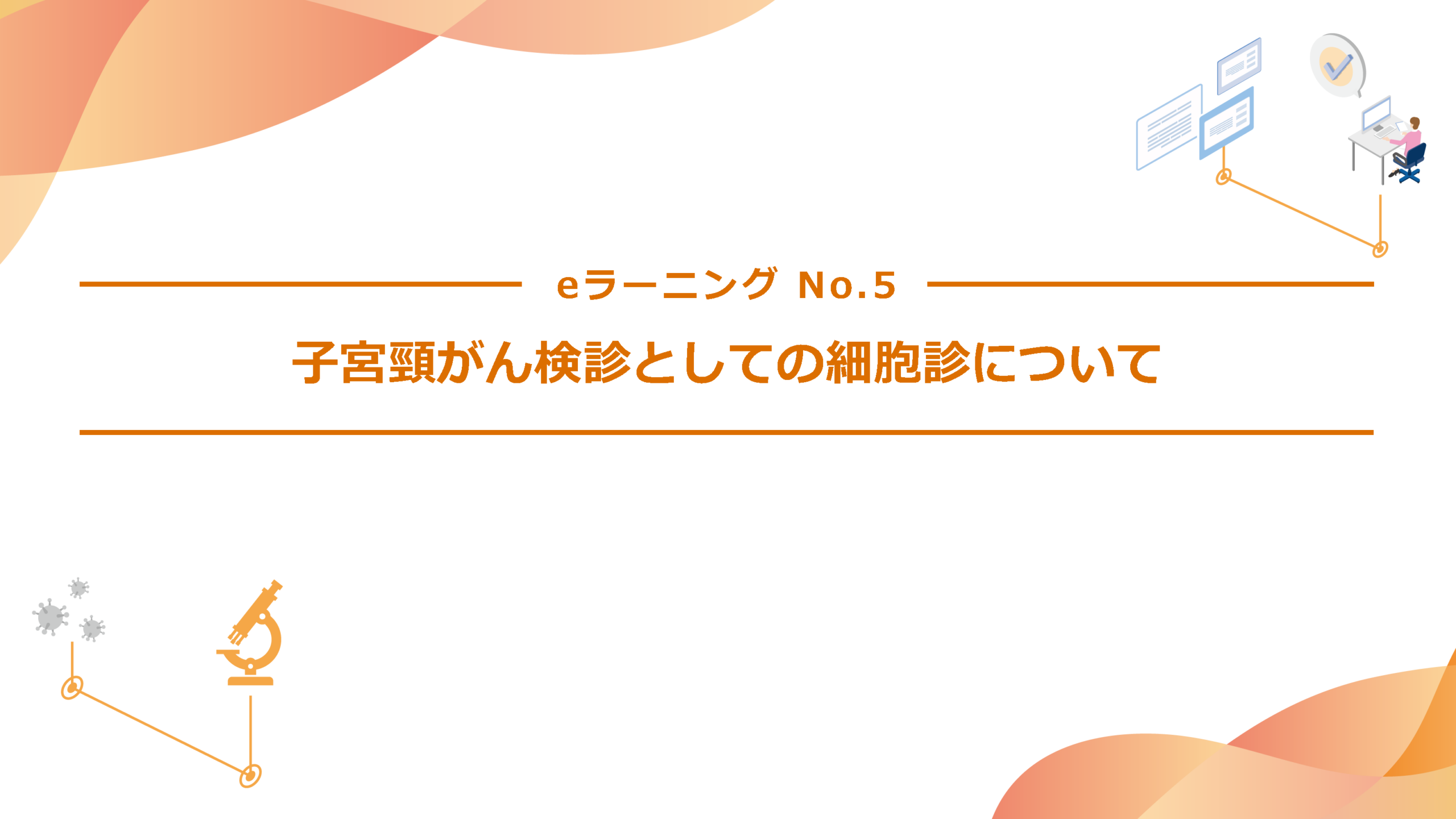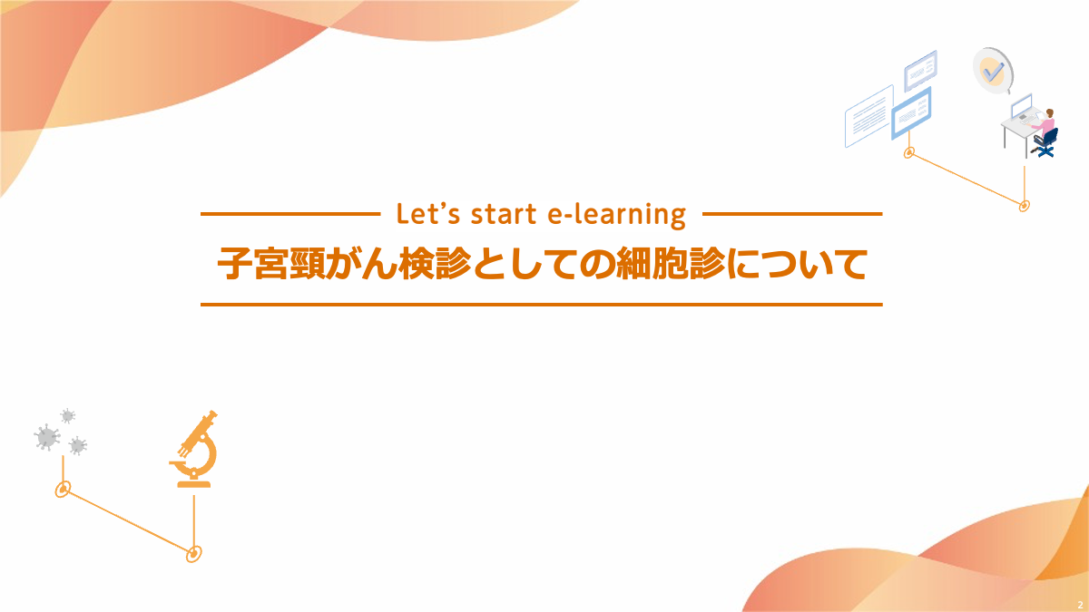 0% eラーニング No.5 こちらでは「子宮頸がん検診としての細胞診について」について解説しています。 まずはPDF資料を参照してください。 1. テキストを確認する その次に、「eラーニングを受講する」から理解度を確認する設問にお答えください。 各設問が正しいか、誤っているかを選択いただく形式です。 1 / 3 Q1.子宮頸部細胞診による、子宮頸がん検診では偽陽性の不利益は発生しない。 ○ × 正解は× がん検診には、がんや前がん病変がないにもかかわらず「要精密検査」と判定される偽陽性の不利益があります。 2 / 3 Q2.子宮頸がん検診として行った子宮頸部細胞診の判定に関する精度管理としては、CIN3 / AIS / 浸潤がん発見例のみを見直せばよい。 ○ × 正解は× 公益社団法人日本臨床細胞学会細胞診精度管理ガイドラインでは、子宮頸部細胞診の判定に関する精度管理として、子宮頸部上皮内腫瘍 3(CIN3)、子宮頸部上皮内腺がん(AIS)、子宮頸部浸潤がん発見例だけでなく、細胞診陰性例の 10%以上を他の有資格者による再スクリーニングを行うことを基本としています。 3 / 3 Q3.子宮頸がん検診の細胞診判定施設は、公益社団法人日本臨床細胞学会の施設認定を受けているか、認定を受けた細胞診専門医と細胞検査士が連携して検査を行うことが望ましい。 ○ × 正解は◯ 細胞診判定施設は、公益社団法人日本臨床細胞学会の施設認定を受けるか、公益社団法人日本臨床細胞学会の認定を受けた細胞診専門医と細胞検査士が連携して検査を行うことが望ましいとされています。 再テストする 一覧に戻る
